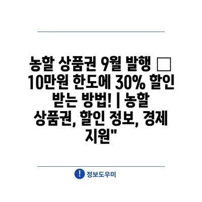 농할 상품권 9월 발행 – 10만원 한도에 30% 할인 받는 방법! | 농할 상품권, 할인 정보, 경제 지원”